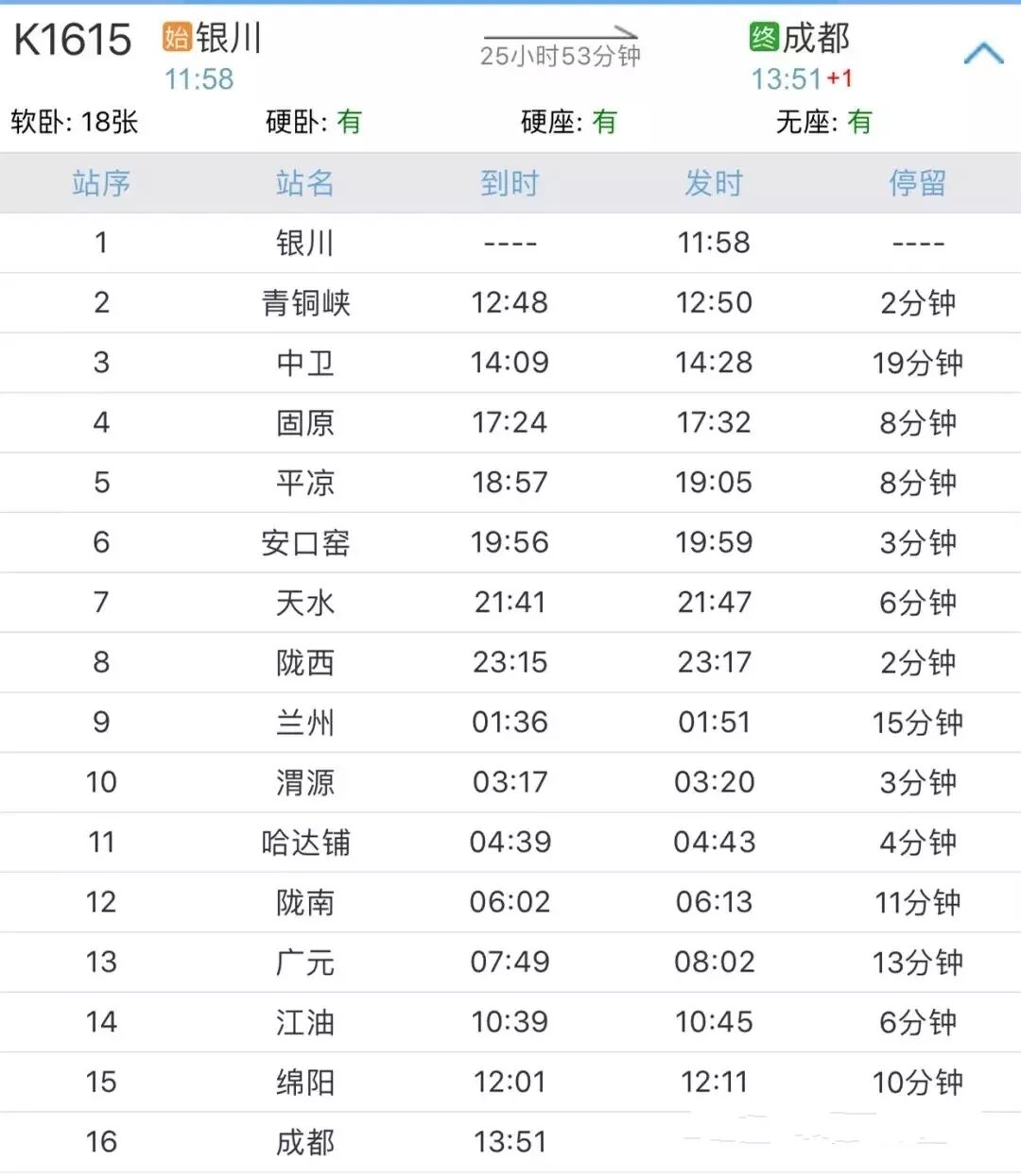 銀川開往成都的K1615次列車,于9月20日售票開通