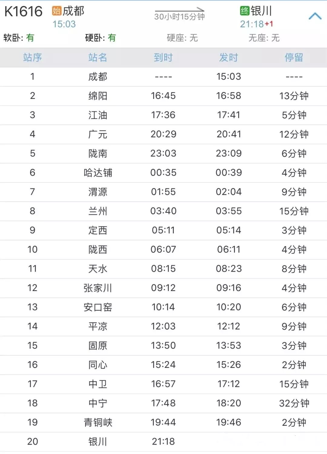 成都開往銀川的K1616次列車,于9月21日售票開通