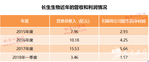 根據長生生物近年來披露的財報數據,盡管公司2017年營收創出上市以來新高,但也只有15.53億元。