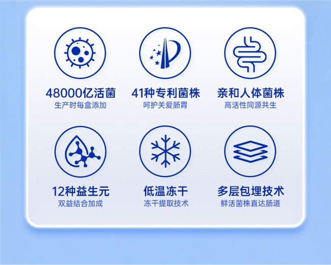配方層面堪稱“腸道養護豪華套餐”,采用“42種益生菌+12種益生元+專利后生元”的協同體系,精準匹配國人腸道調理需求。42種菌株分工明確,全面覆蓋腸道不同區域,其中多種菌株專門針對便秘問題,能有效促進腸道蠕動,軟化糞便;12種益生元作為益生菌的“專屬口糧”,助力菌株在腸道快速扎根繁殖,持續增強通便效能;專利后生元則進一步放大調理效果,搭配優質牛初乳粉中的7種生長因子和免疫球蛋白,既能修護受損腸道黏膜,改善腸道動力不足問題,又能提升免疫力,實現養腸、強免疫一步到位。此外,其含有的副千酪乳桿菌JLPF-176,還能輔助改善幽門螺桿菌相關不適,解決因胃部問題引發的繼發性便秘。
